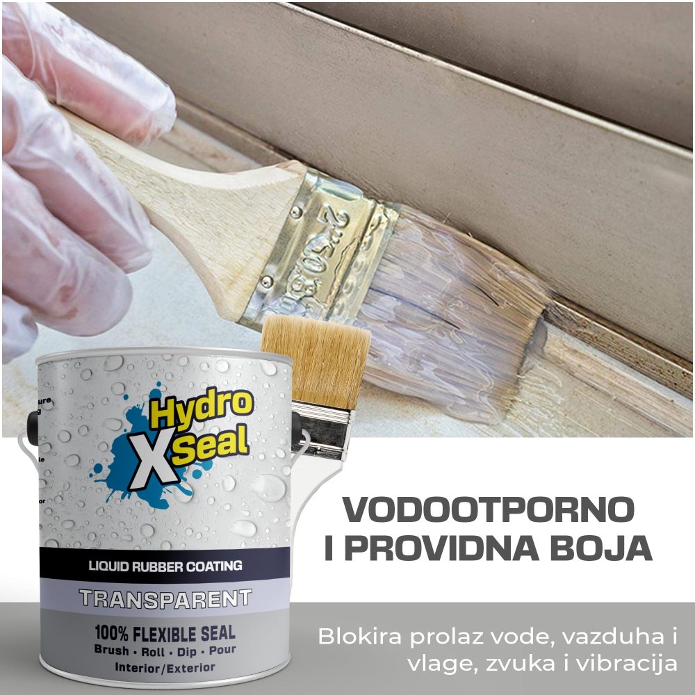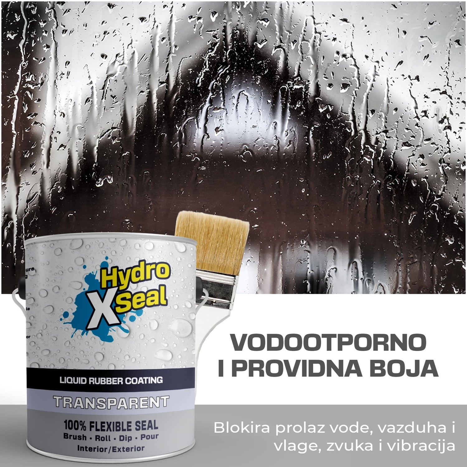 Hydroxseal transparent je prozirna tekuća guma koja sprječava prodor vode i začepljuje pukotine na oštećenim površinama. Nanosi se u tekućem stanju, a njegova primjena je jednostavna. Vrlo je izdržljiva i elastičana, pogodana za unutarnju i vanjsku upotrebu. Uspješno se koristi na raznim površinama poput žbuke, cigle, betona i pločica. Otporana je na vlagu, kišu, snijeg, udarce tuče, UV zrake i ekstremne temperature.